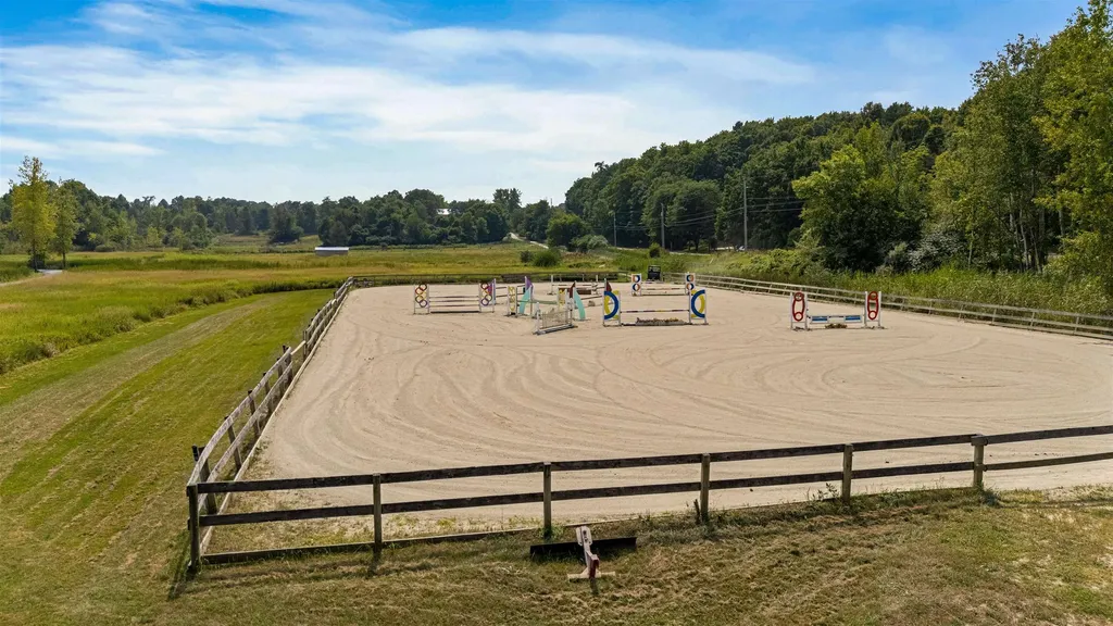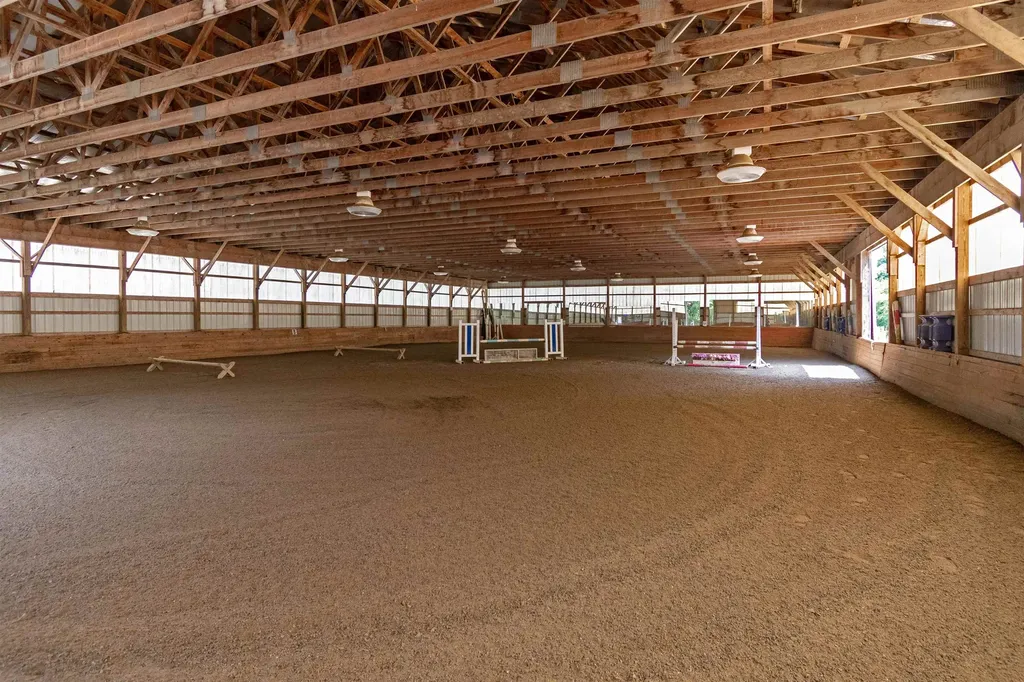 Established Equestrian Facility with an excellent track record and an outstanding location. Situated on 17 acres with 2 barns (22 box stalls and 4 pony stalls), plus 4 quarantine or emergency stalls on the second floor of the original barn. There is an indoor arena (70 x 120), plus an outdoor arena (240 x 110). Both barns have heated tack rooms and running water. The main barn has an office, changing room and wash stall. The historic bank barn and the indoor arena both had new roofs installed in the last 2 years. There are plenty of board paddocks and pastures, plus a large field with run-in shed for outdoor boarders or school horses. And there is a small "recovery" paddock on the north end of the barn. The house is a 3 bedroom, 3.5 bath home with the second floor suite offering a separate entrance, kitchenette and living room for guests or your barn manager. This property has had all the details worked out... places for trailers to park, driveway designed for smaller trailers and cars and trucks to pass thru. 2 locking gates and plenty of parking for your boarders. A rare opportunity in a prime real estate location.